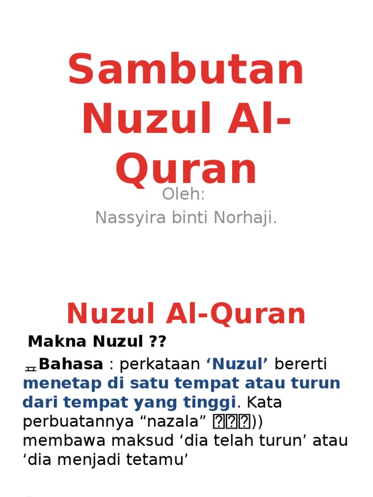 Tahukah anda sejarah apakah yang saya maksudkan? Dari segi bahasa, perkataan nuzul bermaksud turun, atau menetap di suatu tempat. Ktn, kul, lbn, phg, pjy, pls, png, prk, sgr, trg. This ramadan, let us take a moment to reflect on and evaluate our ibadah, and may we be guided by the holy quran. Bagaimana kita merayakan nuzulul quran?